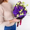 Стандартный: эустома фиолетовая - 11 шт., упаковка, лента. Примерный размер: 20Х20 см.