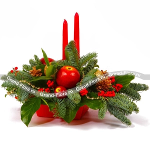 Стандартный: кружка - 1 шт., какао "Несквик" - 250 г., шоколад "M&M's" - 240г., маршмеллоу - 100 г., ель., корзина малая.